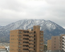 市役所の会派控室から見た野坂山です。うっすらと雪が積もりました。週末には⛄マーク、まもなく冬将軍の到来ですね。