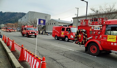 最後に観閲式が行われ私も議会を代表して一言、祝辞を述べさせていただきました。今年も消防団の皆様には、たいへんお世話になりますがよろしくお願いいたします。