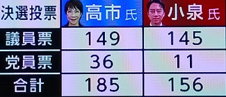 そして、自民党の新総裁には、高市早苗 前経済安全保障担当相が選出されました。選挙では、高市氏と小泉氏の上位2人による決選投票になりその結果、高市氏が小泉氏を破り、新総裁に決定しました。
