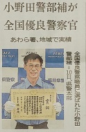 さて、昨日の新聞に「全国優良警察官」として表彰された同級生の記事が掲載されていました。彼とは高校時代、同じ剣道部で汗を流し今も親交があります。現在、山岳救助隊の指導に当たっているとのことです。これからも人命救助、よろしくお願いします。受賞、おめでとう㊗
