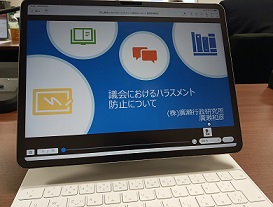 私たちの議会でもハラスメント防止条例を制定しましたが、講師からは、対策委員会の構成や相談窓口の体制などアドバイスもいただきました。また、冗談が受け止められる人間関係になっているか、人間関係の醸成もあるがその反面もあると・・今回の研修で学んだ具体的な例を参考にこれから心掛けて行動しなければなりません。