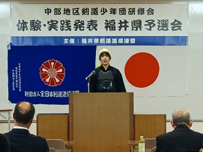 さて、昨夜は「中部地区剣道少年団研修会 体験・実践発表 福井県予選会」があいあいプラザで開催されました。県内から小学生5名、中学生3名が剣道を通じての体験など発表しました。それぞれ剣道をはじめたきっかけや日頃の稽古、大会に出場した感想など自分の言葉で語りかけました。