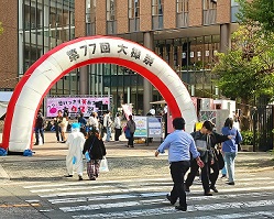 受付では支部長が迎えてくれました。キャンパスもきれになって校舎も増築されていました。学園祭も開かれておりとても賑わっていました。また、本校出身の「ジャパネットたかた」氏の講演もおこなわれました。