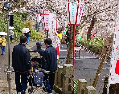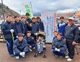 私たちの活動は金ヶ崎宮での「花換えまつり」のときに境内の上まであがれない車いすで訪れた体の不自由な方やベビーカーに乗った小さなお子さんの補助をしています。はじめは有志で実施していましたが、今は、私と共通する剣道部の生徒に声をかけ彼らが自ら活動しています。