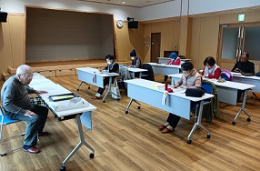 さて、会館では「筆ペン教室」が開催されていました。いつも「ことぶき会」の皆さんが中心に多くの区民の皆さんが参加されています。手本を見ながら集中して筆を走らせていました。今年も会館で多くの団体の活動がはじまります。