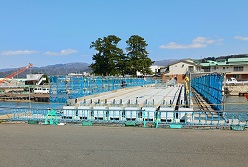 さて現在、「笙の川」では河川改修事業が進められています。そして、松島橋では従来の橋脚を5基から2基にして流下能力を高めます。現場を見てみますと橋桁が架けられ施工準備がおこなわれています。
