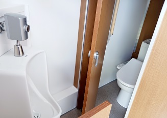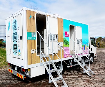 先日、県外のある施設でトイレカーを見かけました。この車の荷台には、男性用、女性用、多機能用と区分されたトイレがあり全ての個室に棚、擬音装置、除菌液ホルダー、ベビーキープが装備されています。また、後方にはリフトがついていて車いすでの利用も可能です。