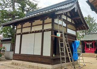 地元の別宮神社では、有志で神楽殿の塗装の塗り替えをおこなっていました。