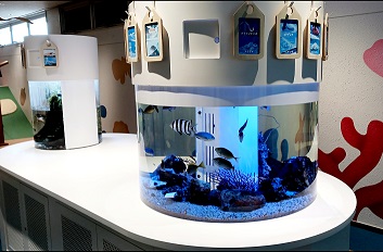 今回のこのリニューアル計画においては、私がこども会や利用者の声を聞き提案した敦賀湾近海の魚の展示、ミニ水槽のコーナーも設置されました。