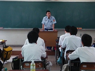 本日は、高校生が市内の公務員や企業、自営業の職場の方から直接話を聞く講座に参加しました。市職員、警察官、消防士、銀行員、建築士など14職種の方がそれぞれの教室に分かれ講演を行いました。