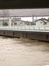 特に来迎寺橋付近は流下能力が低く危険な個所です。このことは何十年も前から河川管理者の県も市も認識しています。そしてこの現状を周辺住民の皆さんにももっと周知しなければなりません。写真は平成25年の大風18号発生時の来迎寺橋です。私は当時この付近を通ったとき身震いしました。もし水位が上昇し破堤したら・・・