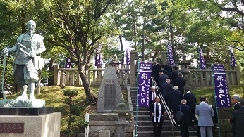 秋晴れの中、水戸烈士例大祭が松原神社で挙行されました。当市や水戸市と関係がある各自治体の市長はじめ多くの来賓の皆さんが参列されました。