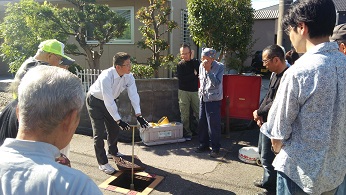 今日は区の自主防災会で消火栓と消火ホースの点検を実施しました。町内の消防署職員から手順を説明していただき周辺住民の皆さんも参加して順次実践しました。