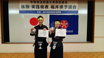 その結果、我が敦賀市剣道スポーツ少年団の小・中学生の発表者が最優秀賞を受賞しました。次は愛知県で行われる中部大会、なかでも中本君は昨年、全国大会で最優秀賞になり日本武道館で全国の少年剣士の前で発表しました。昨年の勢いで頑張って2連覇を目指して下さい!