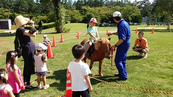 また、外では消防車の乗車体験や高校生のボランティアによるシャボン玉大会、市内の各種団体の飲食コーナーも賑わっていました。なかでも子ども達に人気は動物と触れ合う体験コーナー、初めてのポニーの乗馬体験は大人気です。このように親子でふれあいが持てる場所、また、センター内にも敦賀湾近海の魚介類を展示したミニ水族館など整備できれば市民の子育て支援の一助、そして市外の親子づれの観光客の人気スポットにもなるのではないでしよか。近くには海もありとても自然環境の良い場所です。まだまだ、できることがありそうです。