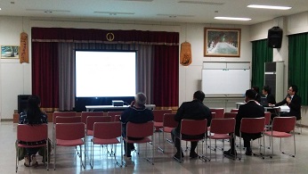 市バス利用者の現状を分析し担当課ではコミュニティバスの再編計画案を年度内に作成します。先の説明会では野坂・ひばりヶ丘線を延伸し東郷、愛発の2路線についてはデマンド運行の試験を導入する計画です。そして現在、各公民館において住民の皆さんの意見を聞く説明会を進めています。デマント交通とは乗車前に予約をして乗り合いでワゴンバスに乗り目的地に行くシステムです。今回の説明では現行のバス停を利用し公民館まで運行しそこからコミュニティバスに乗り換え目的地の行くとのことです。