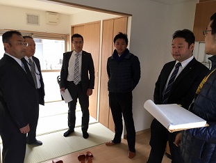 市営住宅再生事業費(事業費4805万3千円)老朽化した和久野団地1棟6戸の住戸改善を予定です。旧住宅と新しいタイプのフラット、メゾネットの部屋をそれぞれ見せていただきました。現在、当市に市営住宅は1608戸あり平成21年からこれまで30戸に再生事業が実施されました。視察終了後再度、議案書を見ながら皆で意見交換をしました。