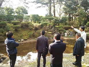 柴田氏庭園保存修理事業費(事業費1853万6千円)平成19年に国の名勝に指定され書院の半解体工事と設計監理を予定です。担当課より書院の中など周囲の整備予定等詳細に説明をいただきました。書院の中からは野坂山がきれいに見えその部屋でいろいろな催しも考えていきたいとのことです。