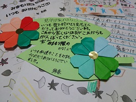 さて話は変わりますが昨日、帰宅すると近所の小学生から見守り隊へのお礼の手紙が届いてました。近年、父母師会の皆さんも朝、見守り隊と一緒に子ども達を見送っています。この体制はお互いいろいろな情報交換もできたいへんいいことではないかと感じています。最近では集団登校中に事故が起きている事もよく耳にします。今後も子ども達が安全で安心して登下校ができるよう私も協力して参りたいと思います。また朝一番の子ども達の元気な挨拶もとても清々しいものです。いただいた感謝の手紙、今年もまた私の宝箱に入れさせていただきます。