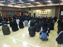 また、敦賀市剣道連盟の稽古はじめ「寒稽古」が市立武道館ではじまりました。今年は雪もなく道場もそんなに寒くありません。小学生から中学、高校、社会人約100名が参加。神事のあと連盟会長から「常に自分に厳しくそして稽古も試合のつもりで・・」と正にその通りです。今回の寒稽古は短い期間ですが頑張って9日には楽しい納会を迎えましょう。