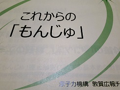 これから廃炉作業にとりかかる「もんじゅ」の説明会を町内の会館で実施しました。広報チームの方からこれまでの経緯や廃止措置の工程、実施体制など詳細に説明をいただきました。ご承知の通りもんじゅはこれまでナトリュウム漏えい事故、炉内中継装置落下などの事象が起き実証炉には至りませんでした。