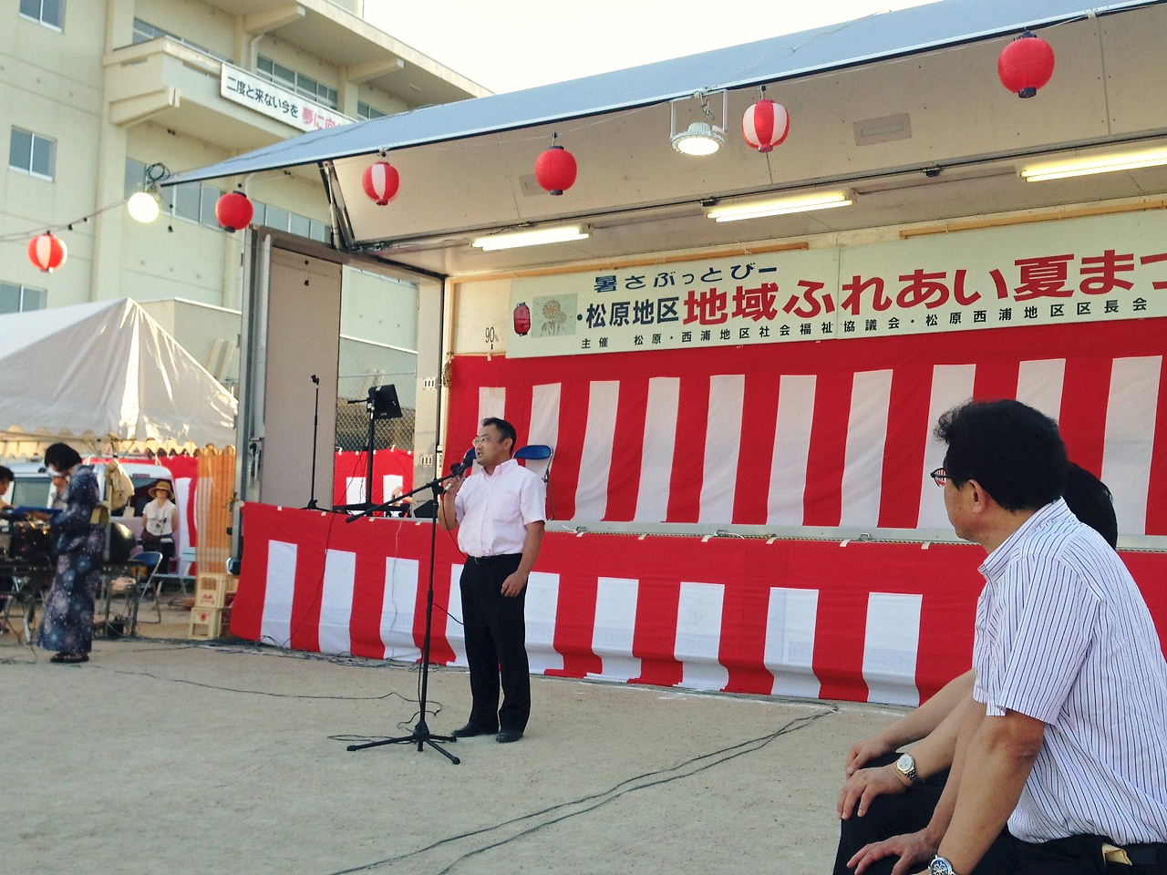 夏祭り 昨夜は地元松原地区をはじめ各町内や福祉施設で夏祭りが開催されました。まだまだ暑い日が続きますが健康管理には十分気をつけてお過ごしください。 真盛苑でのまつりでは楽しい催し物が行われていました。 こちらの会場では教え子達が登場! By まぶち清和 | 2015年7月25日 | ブログ | ← 地方議会議員セミナー 松陵中学校女子全国大会出場! →
